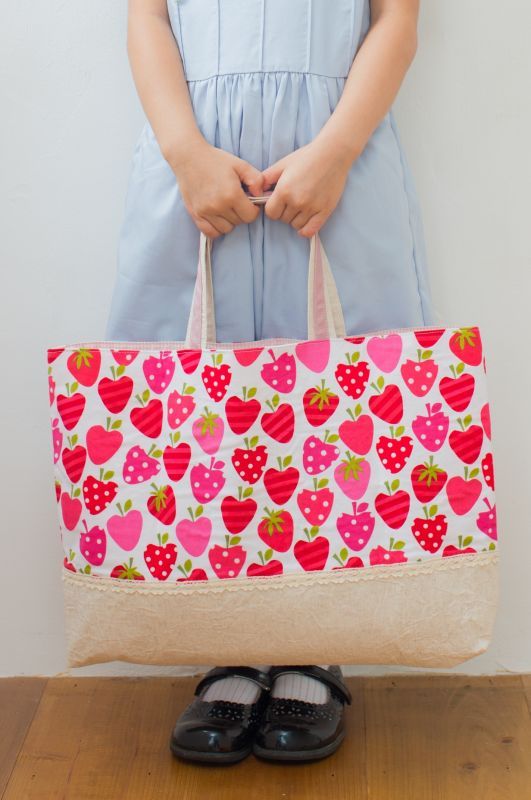レッスンバッグ(基本サイズ)イチゴプリント通園バッグ・絵本バッグ・手提げ袋