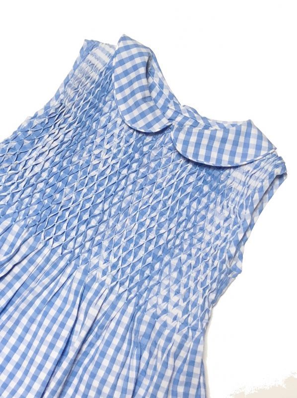 ギンガムチェックノースリーブスモッキングワンピース(ペールブルー)
