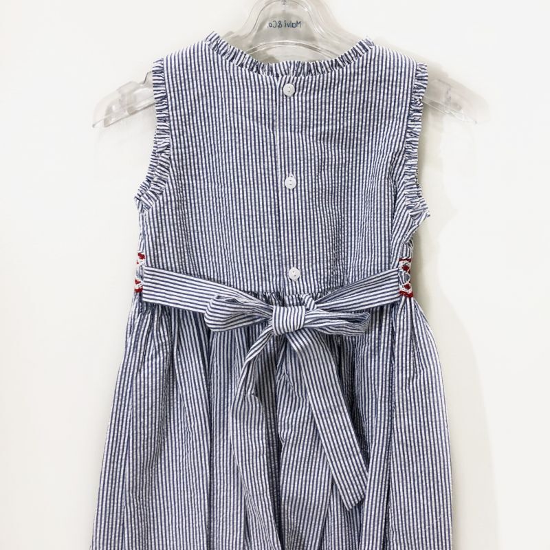 Malvi&Co.(マルヴィ)サッカー素材レッドスモッキングワンピース(ネイビー)5歳110cm