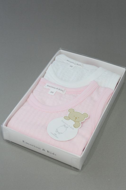 Emotion&Kids(エモーション&キッズ) 女の子の赤ちゃん用ロンパースセット ホワイト×ピンク ストライプ 0〜6か月